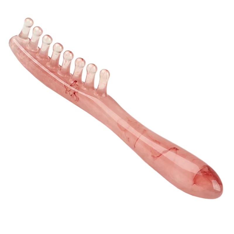 Ce peigne en résine rose offre une expérience de massage agréable et efficace. Ses picots rappellent la précision d’une brosse à dents et permettent de travailler le cuir chevelu en profondeur. Sa matière translucide lui donne une allure moderne et élégante. Un accessoire pratique qui rend chaque séance de soin plus complète et agréable.