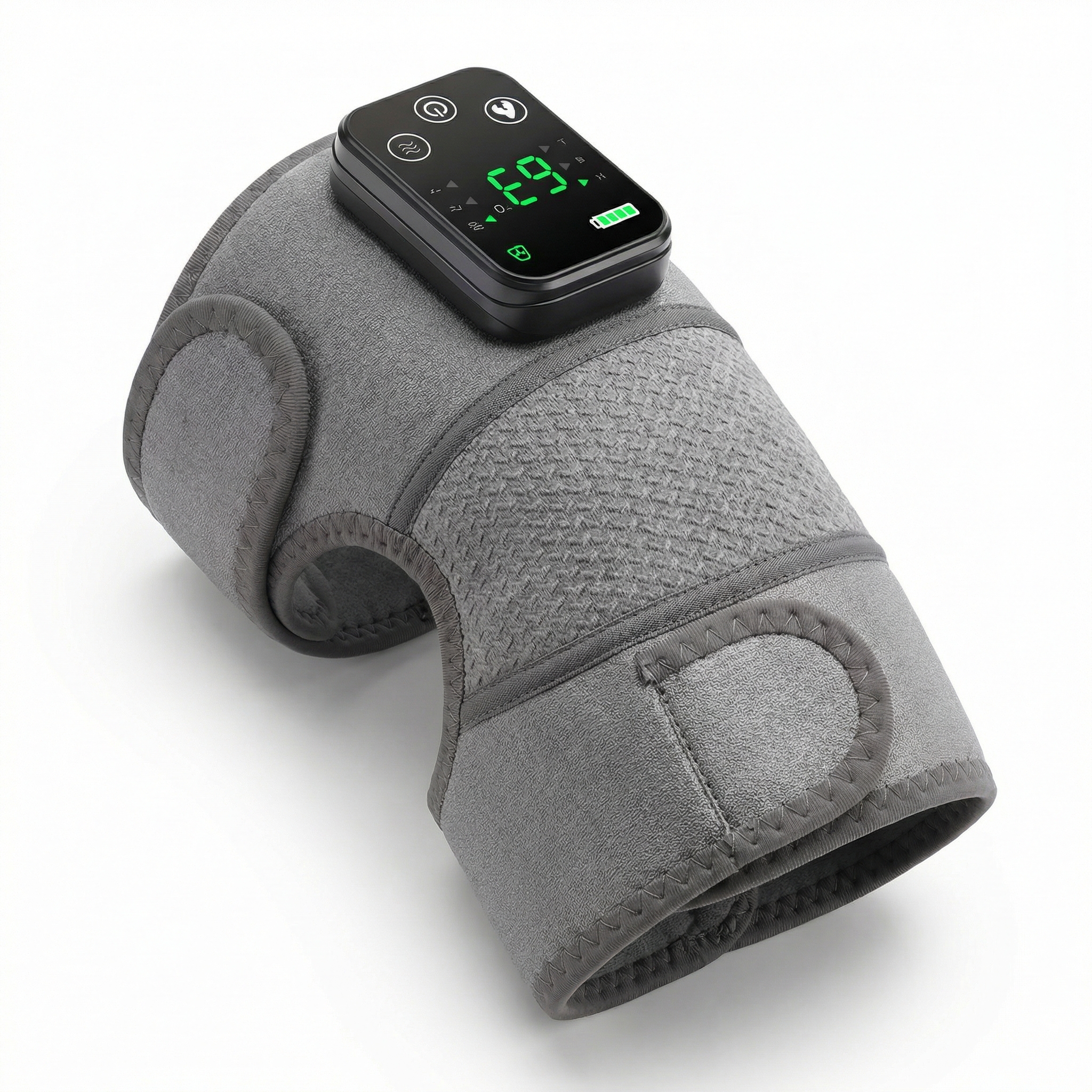 La genouillère chauffante et vibrante intègre un boîtier à écran LED lisible, avec icônes et jauge de batterie, pour régler rapidement les modes. Ses 3 niveaux de température (45/55/65 °C) s’adaptent à vos besoins, tandis que la batterie 4000 mAh limite les recharges. Le textile en polyester et composite type néoprène, avec coutures renforcées, bandes ajustables et renforts latéraux, assure maintien stable. Livrée avec 2 genouillères et câble USB-C.