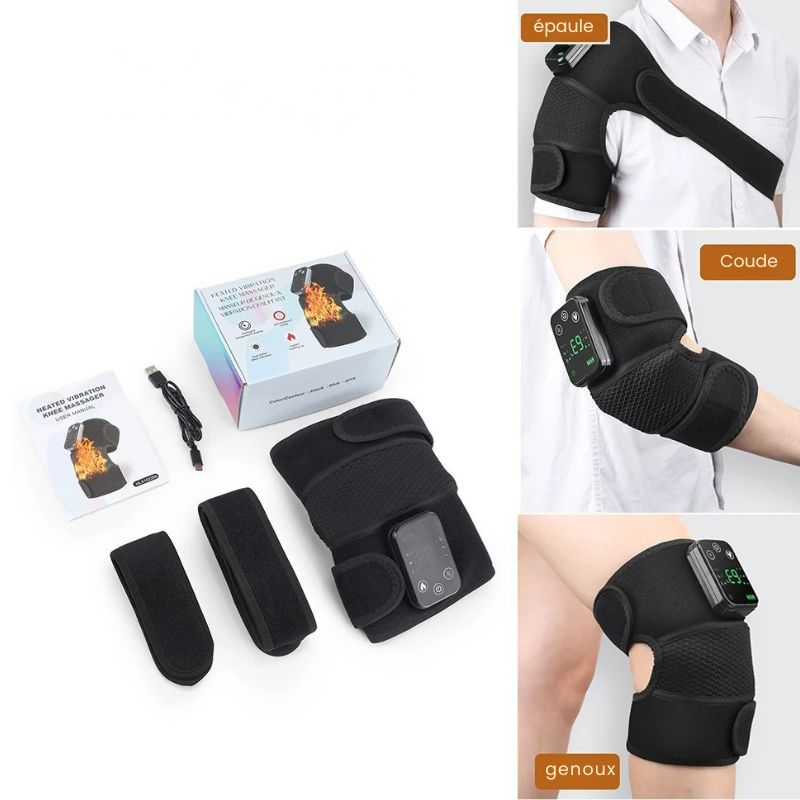 Pensé pour s’adapter à différentes articulations, l’appareil s’utilise sur le genou, le coude ou l’épaule. Son design ergonomique assure un maintien optimal sur chaque zone traitée, garantissant une diffusion homogène de la chaleur et des vibrations. Il agit en profondeur pour apaiser durablement les gênes liées à l’arthrose ou à la fatigue musculaire.