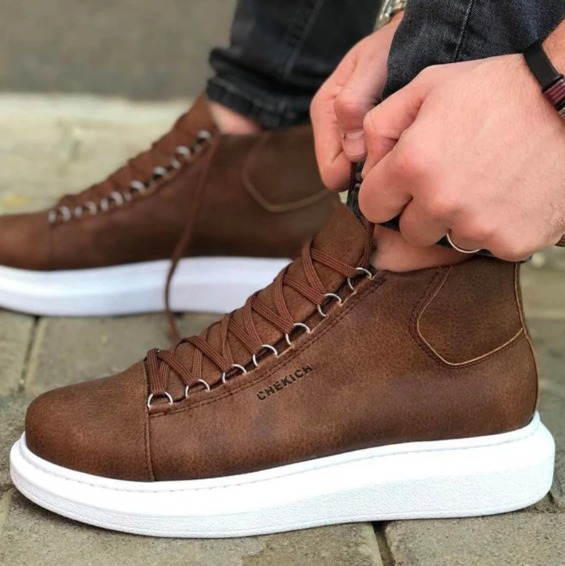 Ces chaussures combinent habilement l’esthétique avec la fonctionnalité. Le simili cuir marron apporte une dimension visuelle riche, tandis que la semelle épaisse assure un soutien inégalé tout au long de la journée. Adaptées à une variété d’occasions, de la marche en ville à une soirée entre amis, elles sont le choix parfait pour l’homme moderne conscient de sa santé et de son style.