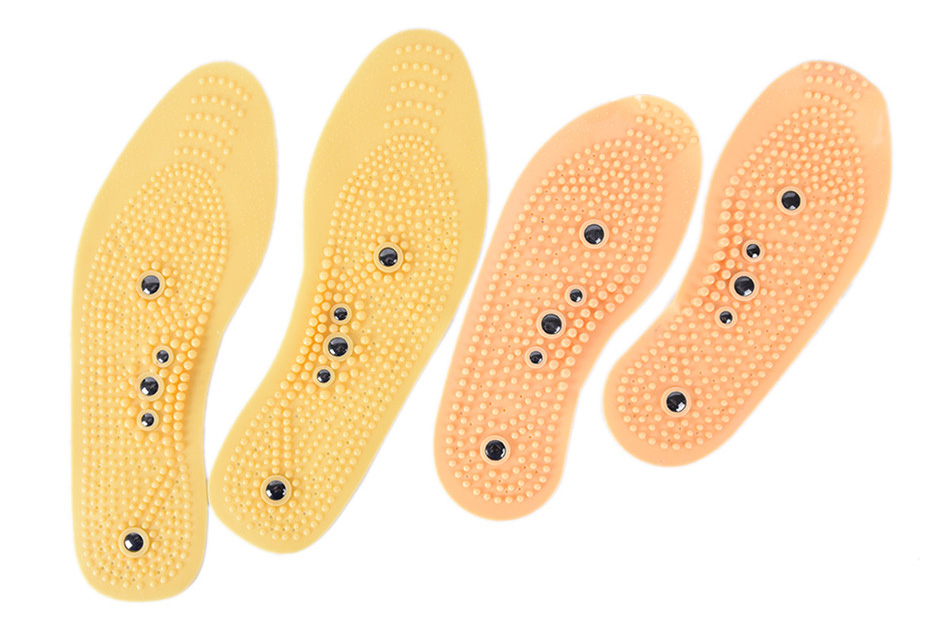 Ces semelles de massage d’acupression possèdent des perles magnétiques placées de façon à coïncider avec les points d’acupuncture afin de vous masser aux bons endroits et vous soulager de vos douleurs. Selon l’acupuncture et le réflexologie, notre plante de pied recèle tous les organes de notre corps cachés en zones réflexes. Un bon moyen de soigner certains maux.