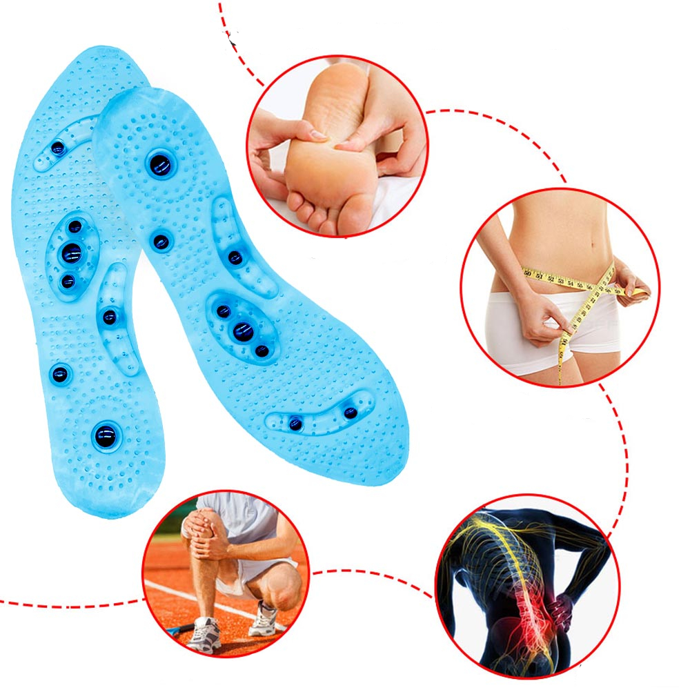 Ces semelles de deux couleurs différentes sont munies de granules magnétiques qui masseront vos pieds et votre voûte plantaire : l’acupression comme la réflexologie plantaire diminueront vos maux de dos, vos rhumatismes et réduiront votre stress. Ces semelles peuvent même permettre la perte de poids. Elles vous sont proposées en deux couleurs et en trois tailles.