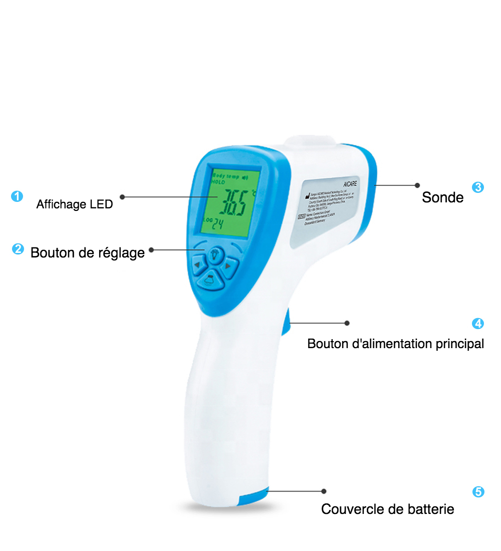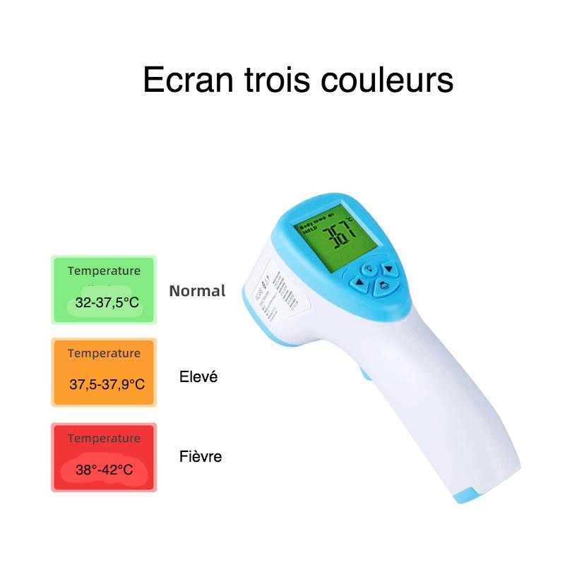 Ce thermomètre vous donnera le degré de fièvre en chiffres bien sur mais aussi en couleurs : vert si tout va bien, orange faible fièvre et rouge si la fièvre est forte. Ainsi la double lecture vous permettra de réagir rapidement. Ce thermomètre fonctionne avec deux piles AAA , mais elles ne sont pas fournies.