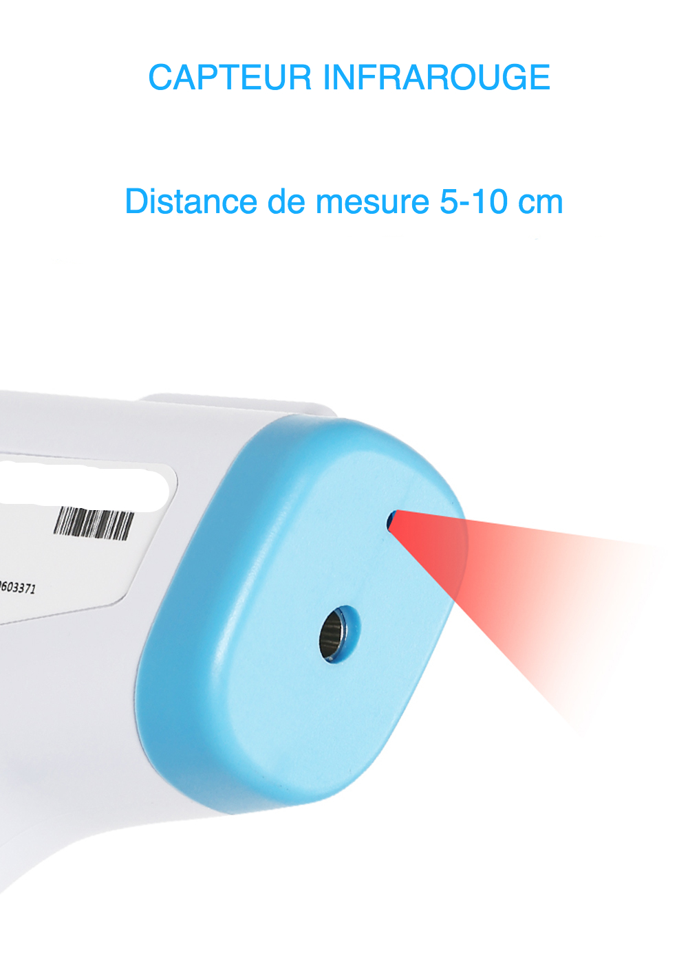 Ce thermomètre frontal électronique sans contact bénéficie d’une technologie infrarouge de qualité : la réponse est fiable et rapide, moins d’ 1 seconde ! ucun danger pour cette prise de température sans contact, idéale pour les bébés et enfants ou sur votre lieu de travail. La distance de mesure est de 5 à 10 cm grâce au capteur infrarouge puissant.