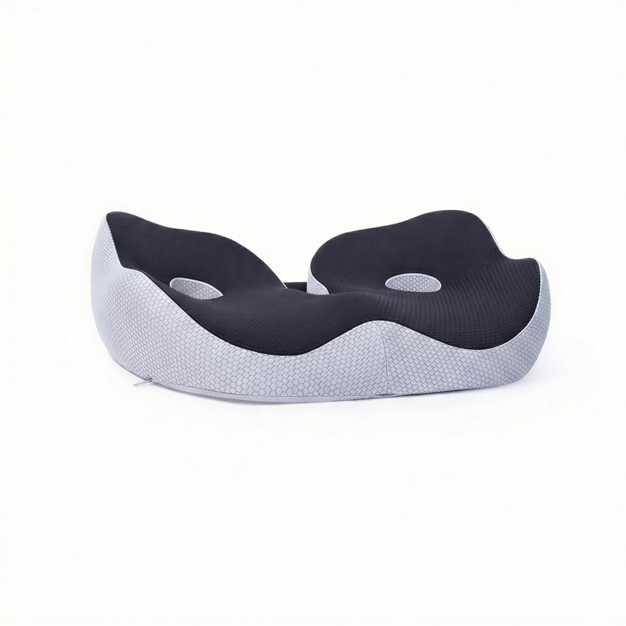 La mousse à mémoire de forme épouse la morphologie et reprend sa forme après chaque usage pour une assise stable. Sa silhouette en forme « selle », avec bords relevés et relief central, répartit la pression et limite les points d’appui. Le dessus en tissu mesh respirant favorise l’aération, tandis que les flancs en polyester/coton, avec coutures renforcées, assurent une bonne tenue. Format 48 × 39 × 14 cm, coloris noir.