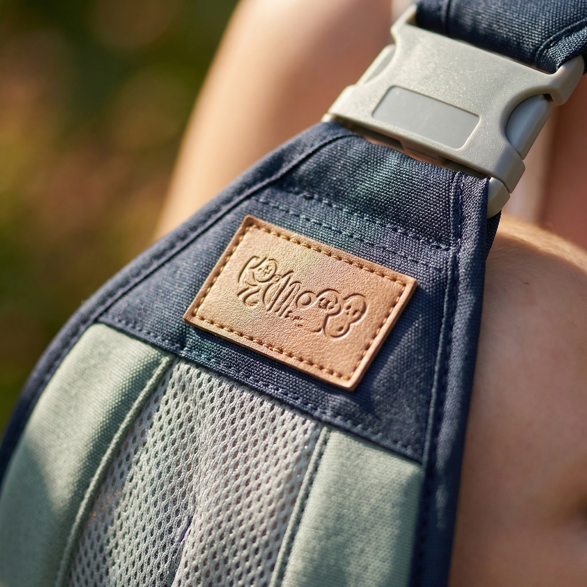 Sangle large en bandoulière avec boucle réglable gris clair pour ajuster vite et garder une tenue stable. L’assise en hammac arrondi avec panneaux cousus répartit le poids et limite les points de pression. Insert en maille aérée pour mieux évacuer la chaleur. Conçu en coton et polyester pour un toucher doux et une bonne résistance, avec capacité jusqu’à 20 kg. Disponible en vert, gris ou rose.