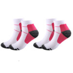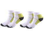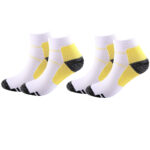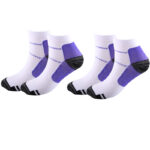 Ces chaussettes de compression élastiques sont conçues pour offrir un soutien et une compression optimale à vos pieds avec une technologie de compression graduée progressive de la cheville jusqu’au bout du pied. Cette compression ciblée favorise la circulation sanguine en aidant les veines à transporter plus efficacement le sang vers le cœur.